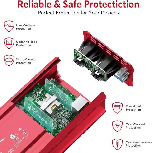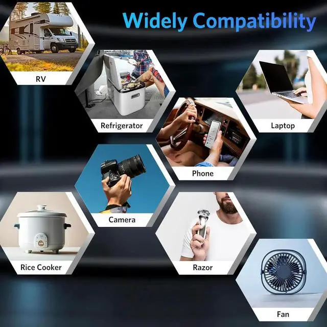 - Converts DC power from your car battery to AC power for you to use within its watt range. Plug it into a 12V cigarette lighter socket to provide continuous DC to AC power, 2 AC sockets to operate any 110V device, 1 USB-A port (QC 18W) and 1 USB-C port (PD 30W ) intelligently detects your device and automatically provides the fastest charging speed, up to 2.4 amps per port / 4.2 amps maximum.