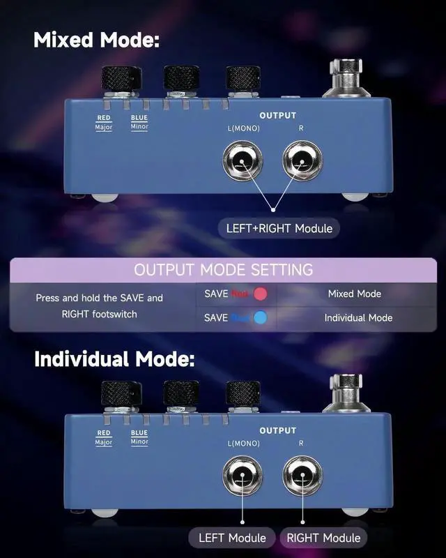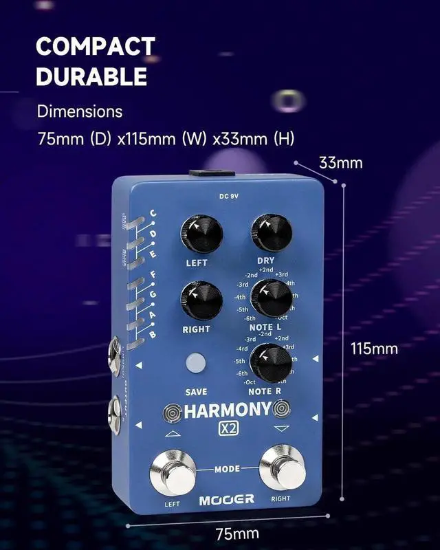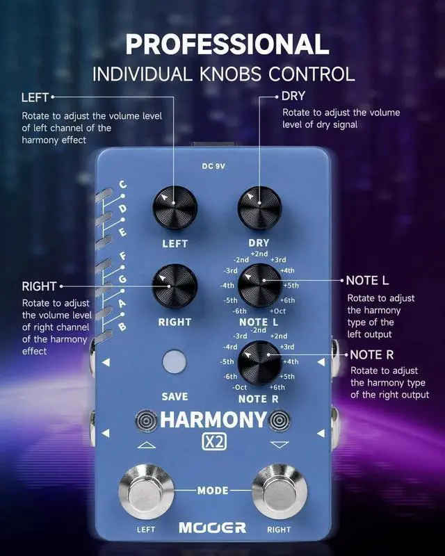 Individual dry / wet signal adjustmentfalseMixed / individual modes for different situationsfalseDual - footswitch control for each harmony effect channelfalse- High - quality stereo harmony effect, up to 12 pitches can switch between major mode and minor mode