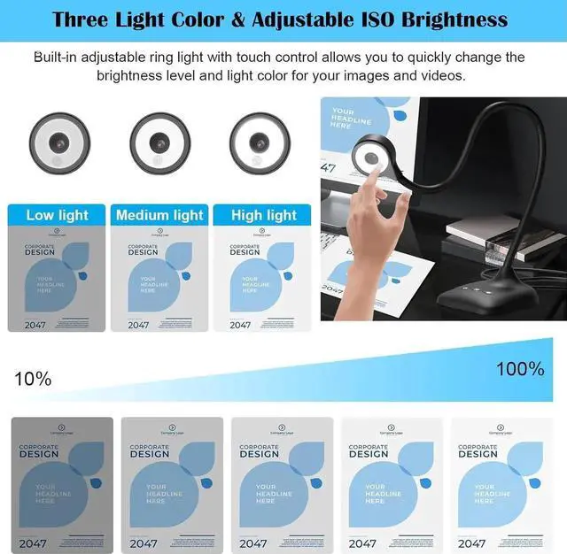 LED light and 5-level exposure: touch LED light button, simple and convenient operation, 3-level brightness adjustable, can change the brightness according to the environment. You can also use the "" button to perform 5 levels of fill light, making it easy to see objects clearly in dim environmentsfalseManual-focus doc camera: It can adjust the focus more accurately to ensure the clarity of the picture. It features HD 1944P resolution with a refresh rate of up to 30 frames per second (fps), and our enhanced focus helps capture videos that are as accurate and true-to-life as possiblefalseHighly compatible, plug