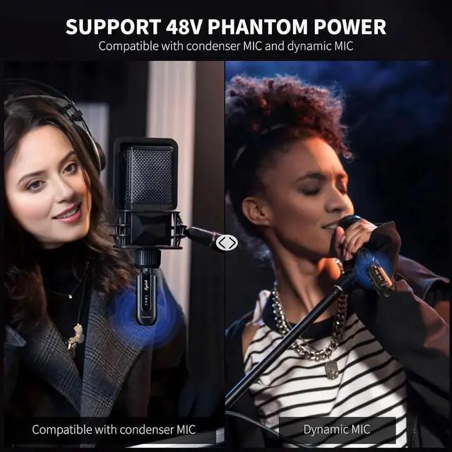 - [48V Phantom Power] This wireless microphone adapter is compatible with dynamic mic and condenser mic. Since dynamic microphones do not require 48 phantom power, please turn it off to extend battery life. Just turn it on when you use a condenser microphone.