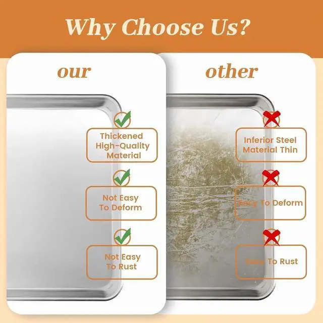 Rimmed Edges: Featuring rolled rimmed edges, our baking sheet offers d strength and durability. Helps to prevent warping even at high temperatures