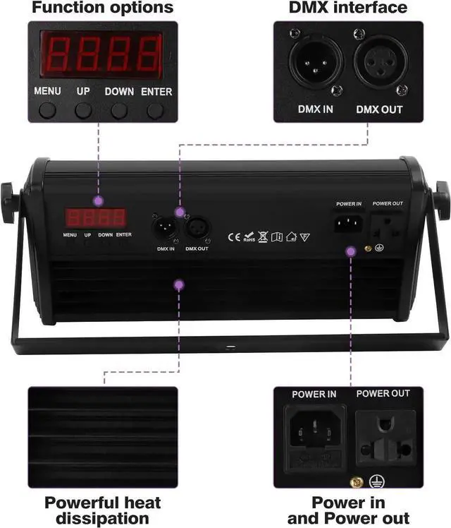 Safe Light: This dj light bar is suit for indoor performances, outdoor lighting, etc., long life span. Besides, it has 25 times/sec high-speed strobe effect and pulse strobe effect as well as efficient and noiseless alnum heat dissipation system.
