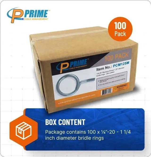 Package contains 100 x ¼-20 - 1 1/4 inch diameter bridle rings.