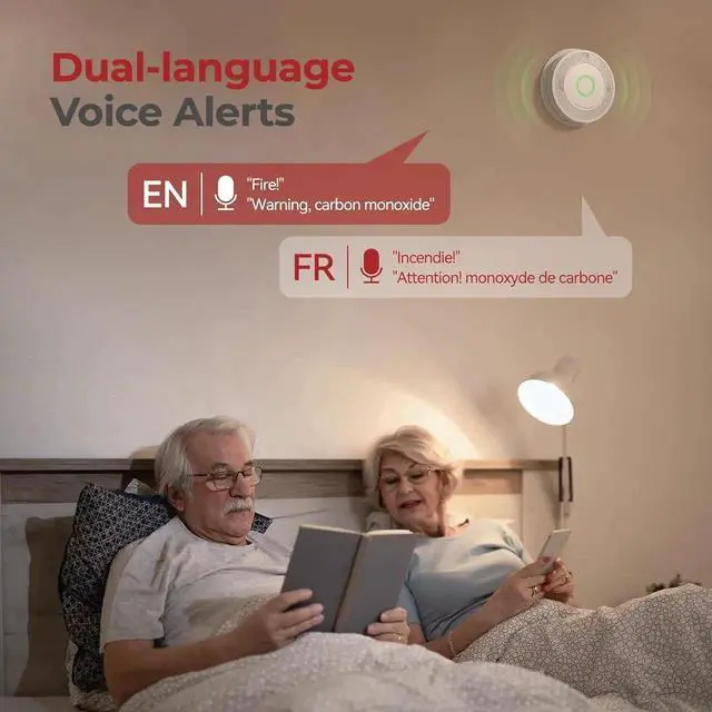 - VOICE ALERT FUNCTION FOR QUICK RESPONSE: When there is a danger, the alarm will loudly announce Fire!, Incendie! or Warning! Carbon Monoxide, which clearly expresses the type of danger, allowing you to quickly recognize and take action. For example, low voltage or malfunction, test, end-of-life, etc. Make sure you never get confused or miss an alarm by dropping it.