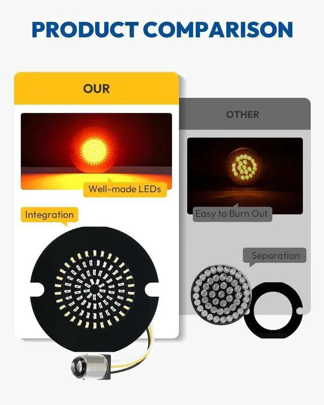 HIGH BRIGHTNESS - Built in 81 PCS SMD LED light, lower power consumption, long lifespan up to 50, 000h, 200% brighter than halogen bulbs with wider range illumination makes you were more easier noticed while riding. Clear back protection, anti-scratch and waterproof.