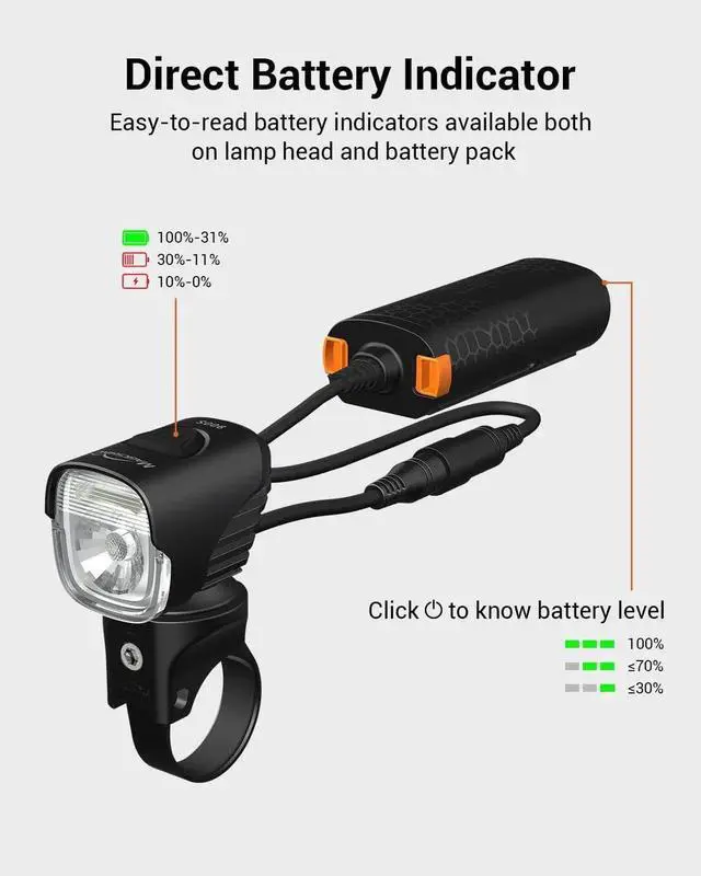 - Safe, Convenient and Versatile 3 Brightness settings and 2 flash modes-1500/1000/500 lumen brightness modes, 2 flash modesmake it suitable for road cyclists, with additional safety features such as an optional independent DRL mode and side lighting. The vertical blinds diffuse the beams from shining directly at oncoming traffic, ensuring maximum safety.