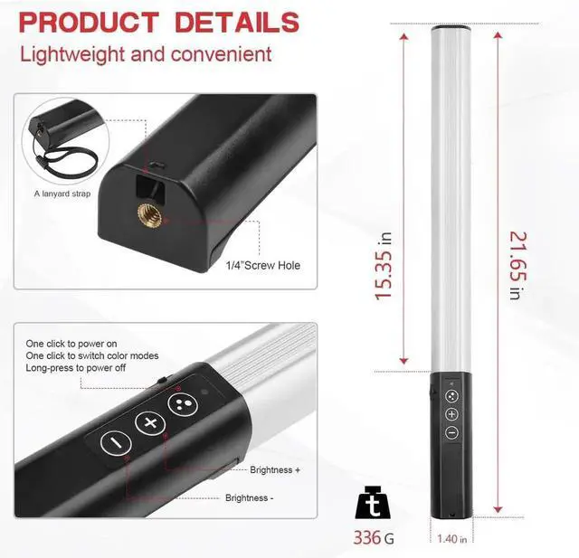 Package&Satisfaction1 x Light Wand, 1 x Remote Control, 1 x Hot Shoe Adapter, 1 x USB Charging C, 1x Lanyard, 1 x Manual, 1x Carrying Bag; One-Year Warranty for refund or replacement and lifetime after-sale service.