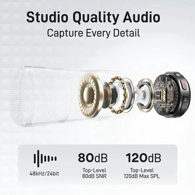 - Studio-Grade Audio Quality: WAVE T5 delivers the industry's best 80dB signal-to-noise ratio, 120dB maximum sound pressure level, and 48kHz/24-bit audio format, capturing subtle sound details in various environments with low noise floor.