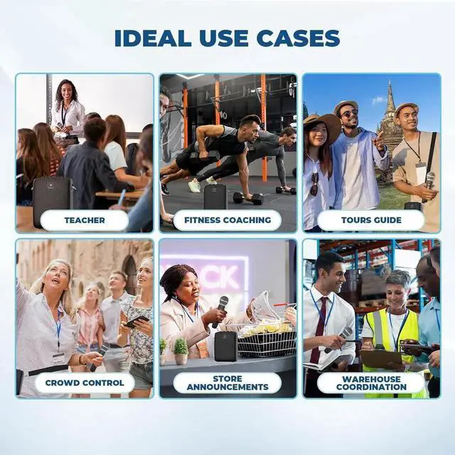 PA system excels as: A voice amplifier for teachers in large classrooms. A wireless mic for events like conferences or fitness classes. A meeting sound system for clear presentations.