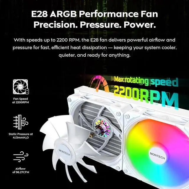 High-Density Radiator 27mm thin, 20 FPI radiator maximizes heat transfer efficiency without sacrificing case space or performance.