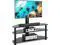 HEAVY DUTY TV STAND: Solid as a rock and reasonably st, the loading capacity for the mount bracket is up to 110lbs, 88 lbs for the top shelf, 33lbs for the middle and bottom shelf. Each elegant shelf is made of hard tempered glass with rounded corners for maximum strength and security. This 3-tier media cabinet is large enough to put your soundbar, DVD player, Alexa Echo Studio, AV components, gaming systems, etc..