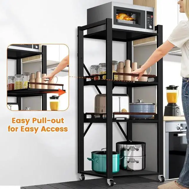 Beyond its primary function, this stand offers flexible storage for various kitchen essentials like pots, pans, dinnerware, and food supplies. The adjustable middle shelves create ideal spaces for tall pots or small appliances, making it a versatile organizing solution for your kitchen.