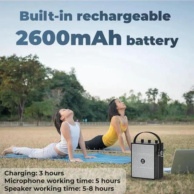 - Reliable Wireless Connectivity: Enjoy the freedom of movement with our portable microphone and speaker. This versatile personal voice amplifier offers reliable wireless connectivity, allowing you to move freely without being tied down by wires. Whether you're teaching a class, hosting a presentation, or leading a group event, this portable microphone with amplifier ensures your voice is always heard with crystal-clear clarity and confidence.