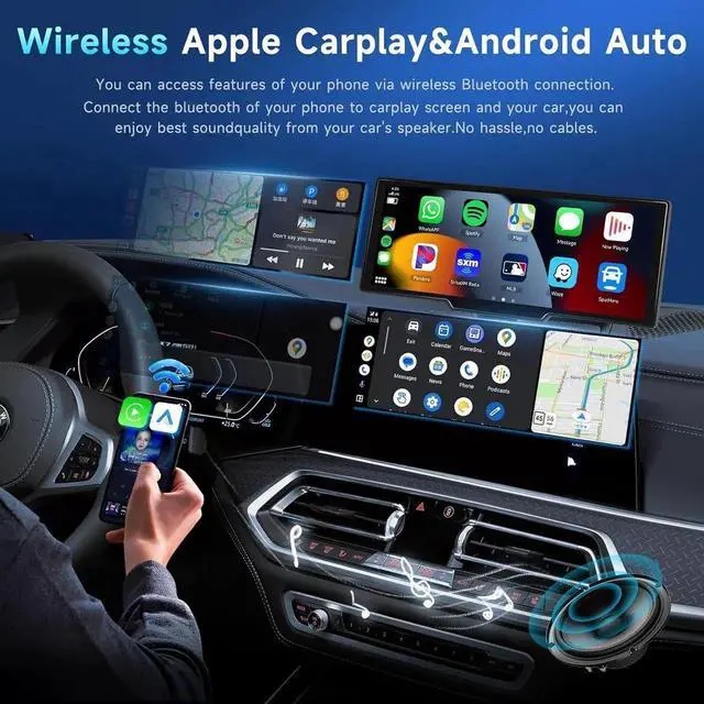 : This wireless carplay screen with the latest dual Bluetooth technology, connect your phone via Bluetooth to use wireless CarPlay and Android Auto on the portable car stereo. At the same time, pair your phone to the original car Bluetooth to play audio over the car speakers directly