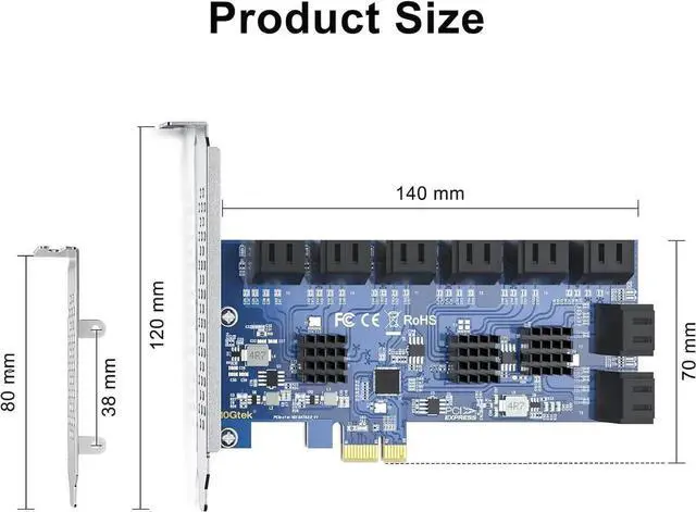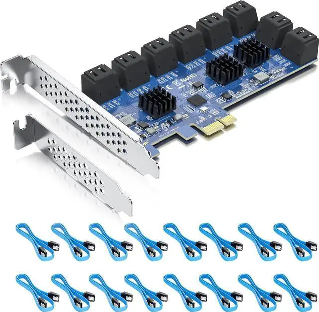 Full height and low profile bracket included. NOT support hot swapping! falseSupports Windows 8/10/11, Windows Server 2012 R2/2016/2019/2022, CentOS 6/7/8, Debian 9/10/11, Ubuntu 16/18/20/21, SUES 11/12/15, FreeBSD 11/12/13, VMware ESXi 6/7/8. false- It connects sixteen 6 Gbps SATA 3.0 SSDs or HDDs to your desktop computer with 16 SATA cables to improve your system performance and expand overall internal storage. (NO-Support Raid)