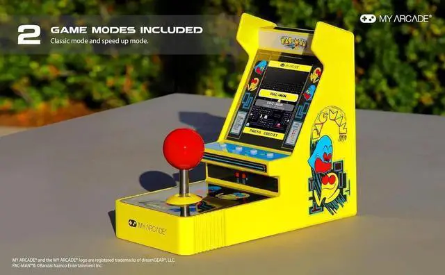 Headphone Jack: 3.5 mm headphone jack lets you enjoy PAC-MAN on the go on your own privately. Built-in speaker with volume control and adjustable screen brightness.