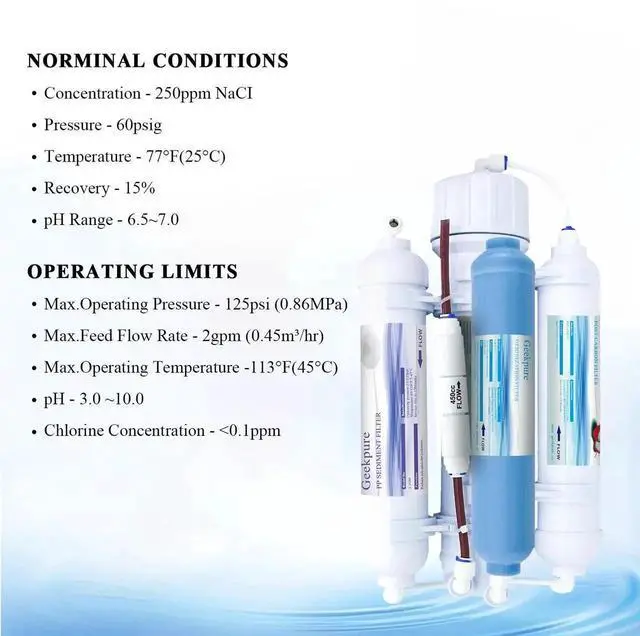 RO tube size: 1/4 inches. The ratio of pure water and waste water is 1:2. RO membrane is NSF certificated, to provide healthy and pure water. Quick Connections make it easy to remove and replace filter cartridgesfalseSystem comes with high quality quick connect fittings, color coded tubes, and installation manual for an easy DIY experience, No need professional installation, you can understand everything about your system and install it with our clear, well-organized instructions in a couple of hoursfalseTankless and without faucet, but add-on Drinking Water Kit with 2.8 Gallon Tank available, asin: B07DBZN79S. This Unit is perfect for apartment, RV's, business travel, vacation, yacht, boat, mobil home or anywhere you need the pure waterfalse- 4 Stage Reverse Osmosis water filtration system - Filter Precision down to 0.0001 micron, Reduce arsenic, lead, fluoride, mercury, cadmium and more, Special design for aquariums use or peolple drinking solution