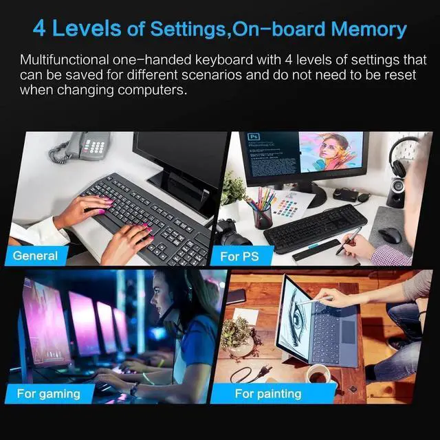 4-layer Custom ConfigurationBuilt-in MCU, after setting the keyboard keys, they can be stored in the keyboard's MCU without resetting the keyboard. 4 levels of configuration can be saved to handle multiple use cases. Not only for gamers, but also for many other types of users, including designers and video editors. Not only for gamers, but also for many other types of users, including designers and video editors.