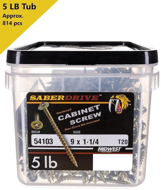 • 5 LB TUBS: These cabinet hardware screws are availae in sizes: #9 x 1-1/4, #9 x 1-1/2, #9 x 1-3/4, #9 x 2-1/2, #9 x 3, and #9 x 3-1/2"