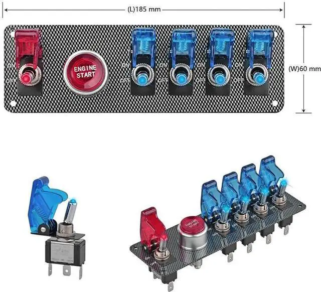 Safety covers prevent accidental activation, panel made of carbon ber, durable and comfortable touch feeling.