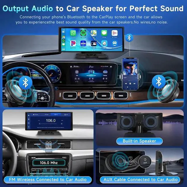 : This wireless carplay screen with the latest dual Bluetooth technology, connect your phone via Bluetooth to use wireless CarPlay and Android Auto on the portable car stereo. At the same time, pair your phone to the original car Bluetooth to play audio over the car speakers directly