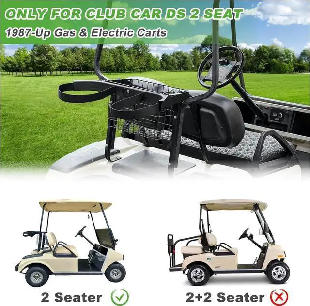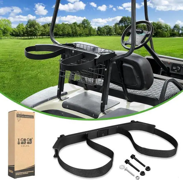 Powder coated steel for strength and durability. Complete with Golf Bag Attachment Bar, Golf Bag Accessory, and extra straps that mount to the lower flip seat support for extra security