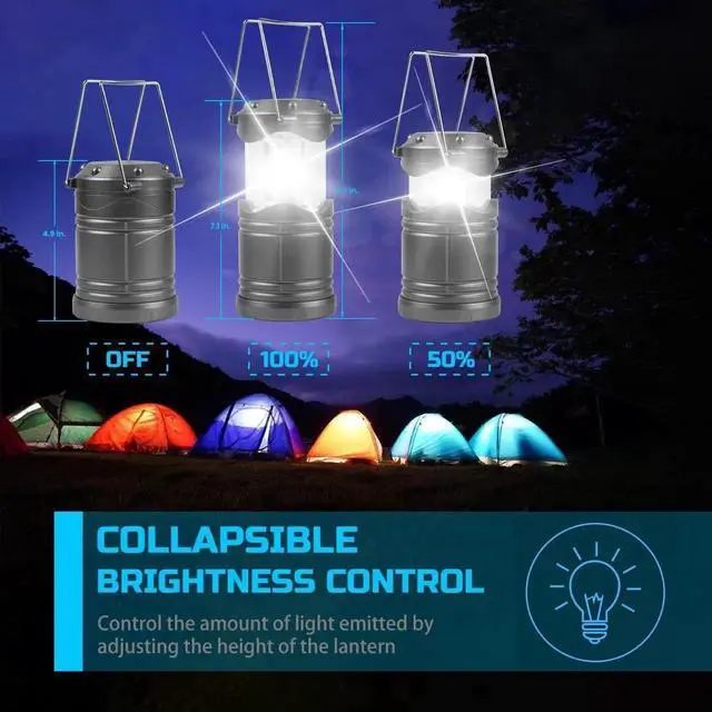 • ULTRA BRIGHT & SAFE: Designed with 30 energy-efficient LED for 360 degree lighting (97 sq.ft coverage), the latest COB technology features 350 lumens; Emits softer and brighter light; Use 3 AA batteries (not included); Safe to touch at low temperaturefalseRELIABLE CONSTRUCTION: Made of military-grade and water-resistant plastic, the durable, portable and lightweight build allows you to hang or carry it to anywhere, hard enough to resist external shockfalseCOMPACT & COLLAPSIBLE: Features foldaway handles for easy suspension and portability, collapsible to store when not in use; Pull up the handles to turn it on or control the brightness, no switches requiredfalse