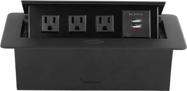 Ingenious Design- This desktop pop-up socket with a textured black face plate. Hard wired into power source and used in conjunction with all Power to Power Cables. Pop up slowly in 45 degree with damped spring structure. After press the button to open the socket, you can connect wires and USB charger.