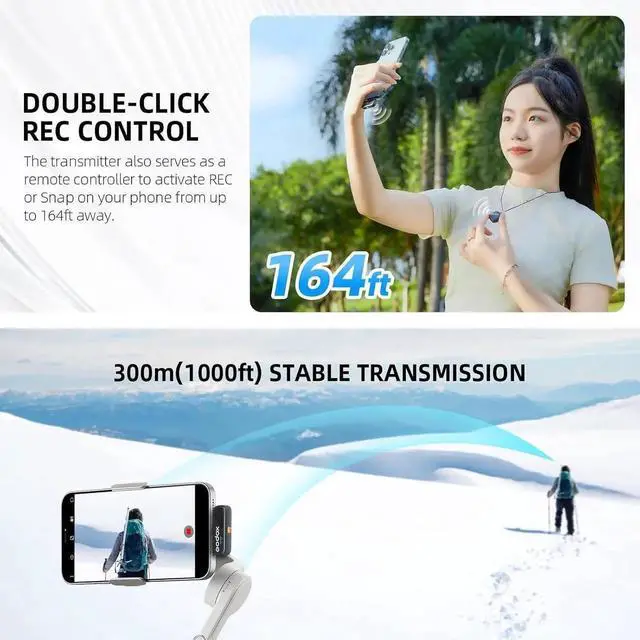 USER-FRIENDLY designSimply double-tap the transmitter to st recording or taking pictures on your smphone from a distance of up to 50 meters. This is especially useful if you work alone or don't want to stand directly next to the device. Plug-and-play functionality makes it n easier to use - just plug it in and it works instantly, with no additional apps or setup required.