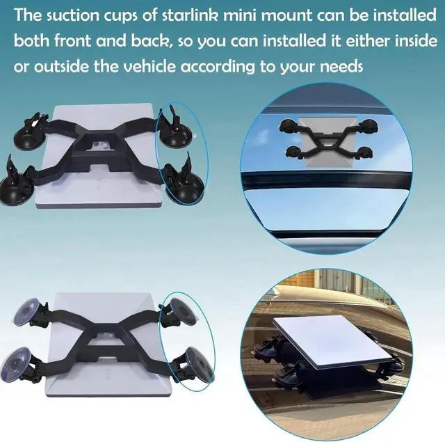 Multi-scene UseThe suction cups of starlink mini mount can be installed both front and back, so you can installed it either inside or outside the vehicle according to your needs. You can also install it on the windows of your home.