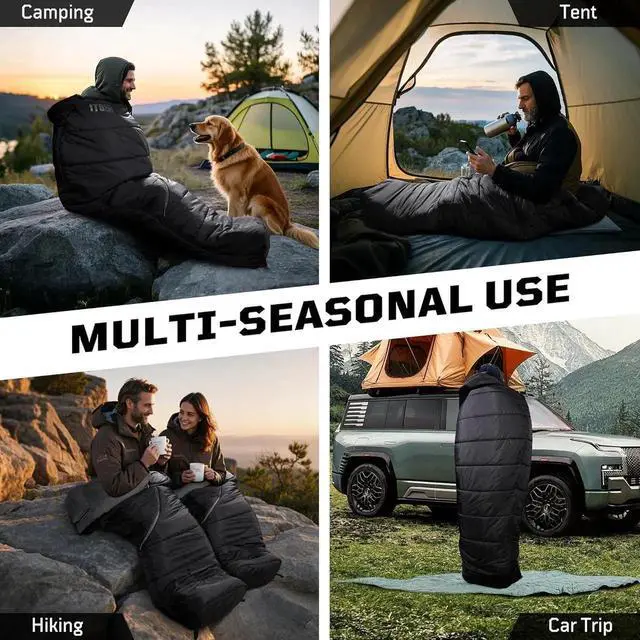 Enhanced Weather Protection & Comfort: Maximize warmth retention with integrated windproof strips at critical neck and zipper areas, plus an adjustable hood and collar. The spacious 3D Foot Box of the camping sleeping bags provides extra room and is lined with soft fleece for superior comfort and added warmth during cool nights