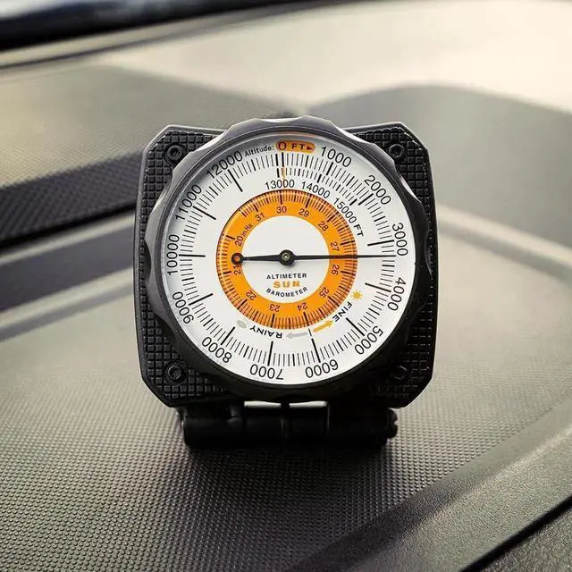 Easy-to-Read Scale - Easily measure altitude up to 15, 000 feet. Barometric pressure is measured in inches of Mercury (Hg). Use the weather trend indicator to predict incoming low or high-pressure weather systems. falseFull Instructions Included - Easy step-by-step instructions help you learn how to set and adjust your SUN altimeter. false- Easily Mounts to Dashboard - Mount AltiLINQ to either the top OR front of your dash in your car, truck, or vehicle. Comes with two hook-and-loop attachments so you can easily mount in two different vehicles. Quickly detach AltiLINQ and take with you on the trail.