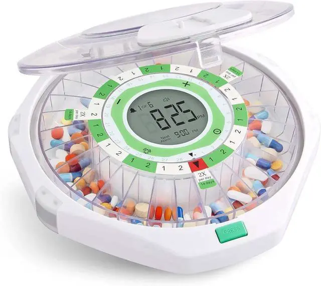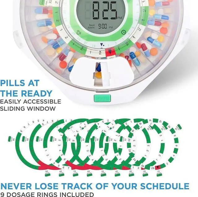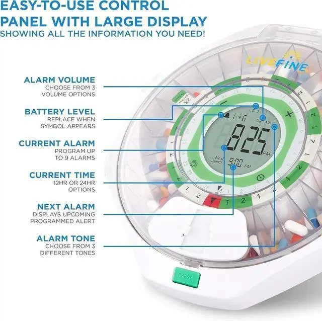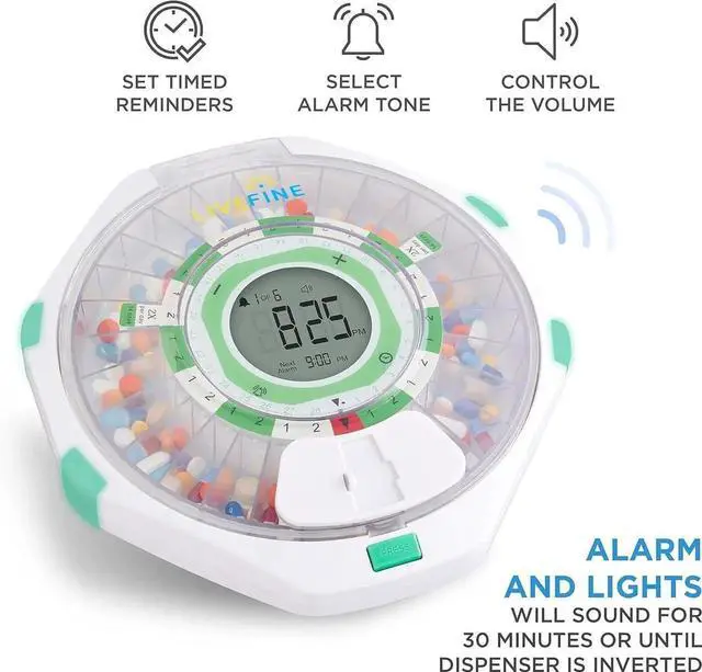 ADJUSTABLE SOUND & LIGHT-UP ALERTS / While Most Medication Dispensers Have Only [1] Preset Alert Option, This New & Improved Version Allows for Amazing Customization with [3] Beeping Patterns & [3] Volume Controls [Low, High, Silent] / Interface and Border Lights Illuminates & Tone Sounds for 30 Minutes Until User Inverts Box to Dispense Pills