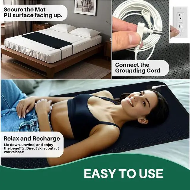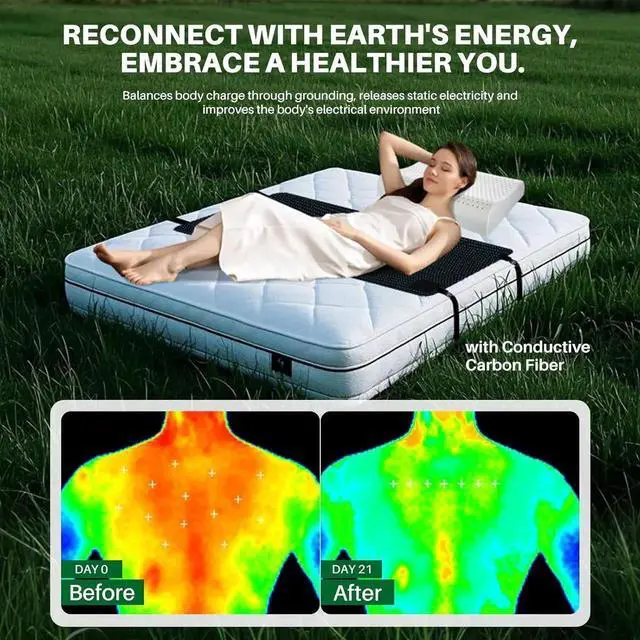 IMPROVE SLEEP AND REDUCE STRESS: Achieve deeper, more restful sleep with this grounding mat for bed, designed to help balance your bodys natural electromagnetic field. Perfect for promoting relaxation and stress reduction, this grounded mat brings wellness benefits that seamlessly integrate into your nightly routine.