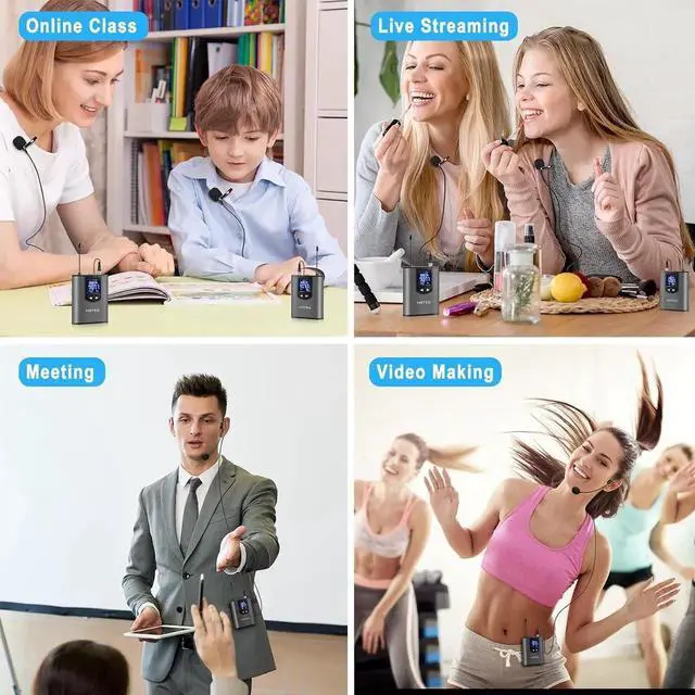 - MULTI-USE APPLICATIONS: The two undirectional condenser headset microphones and lavalier lapel microphones are comfortable to wear, picking up your voice from any angle, they deliver warm, clear and loud high fidelity sound. Ideal for church, training, classroom, interview and business presentations et