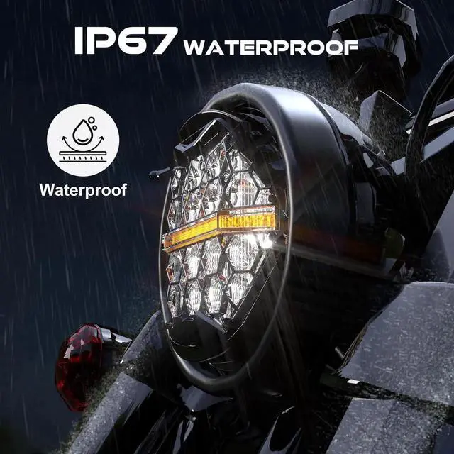 EASY INSTALLTION - BUILT IN EMC - This 5-3/4 inch motorcycle headlight made by black durable aluminum housing, shock-proof waterproof (IP67). New built-in canbus and EMC function used for prevent flicking and interfering with your bike radio. It can be installed with minimal tools, making it accessible even for those who arent particularly tech-savvy.