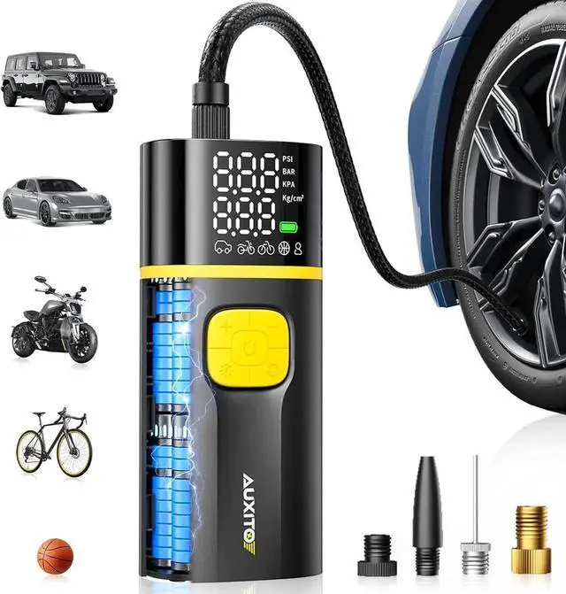30W FAST CHARGING With a PD 30W quick recharge design, A502 battery powered tire inflator can reach full charge in just 1 hour (others with no fast charging will need nearly 4 hrs to charge), allowing you to get back to the cordless tire inflation sooner without long time waiting. Convenient to inflate cars, SUVs, trucks, motorcycles, bikes and balls