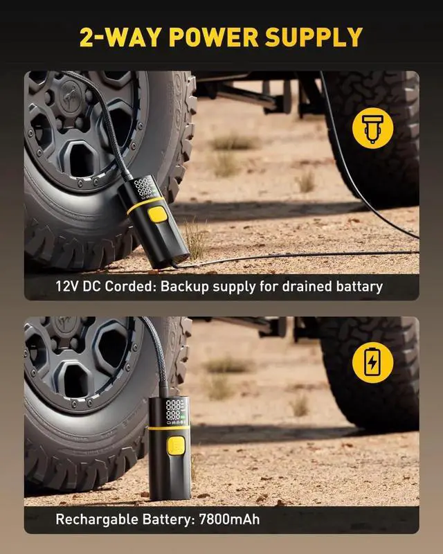 MUST HAVE EMERGENCY ROAD PACK Except inflation, multi-function portable tire inflator can also be used as power bank to recharge your phone, and the built in led light provides better visibility in low light conditions. An indispensable daily tool for anyone looking for convenience and peace of mind