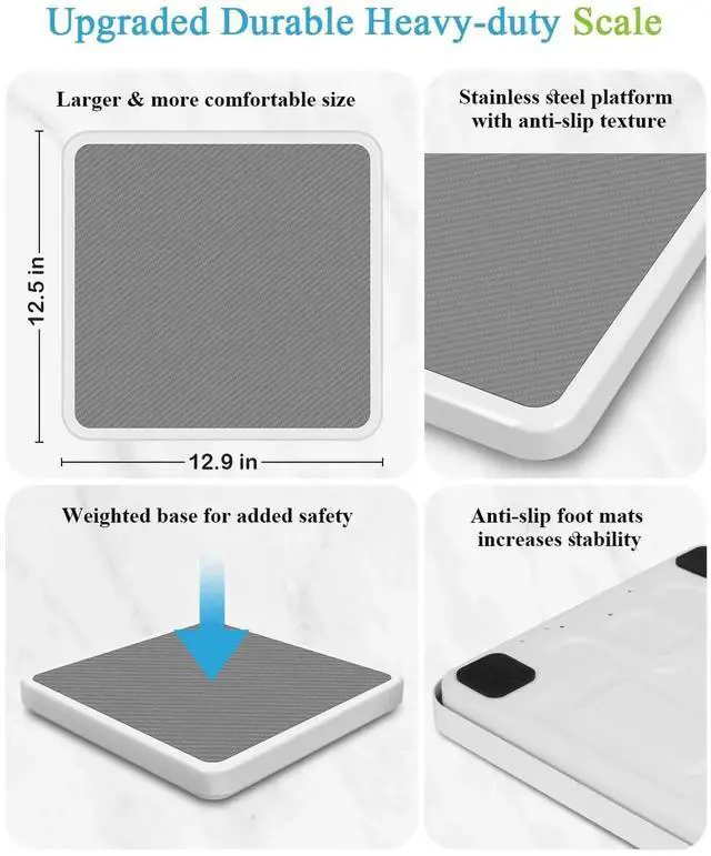 Upgraded Design: Sturdy stainless steel platform( 12.9 x 12.5 in) with anti-slip texture, weighted base, and anti-slip pads for a more comfortable and stable weighing experience. A gift filled with love and care for Christmas, birthday, Father's Day, Mother's Day, Valentine's Day, and any other occasion