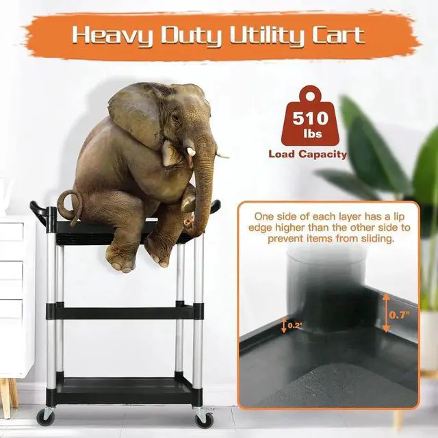 Humanization DesignErgonomically designed utility cart handles provide l hand placement for more comfortable control. The rounded corner design can avoid forming pits on the wall or furniture. Moreover, the smooth surface makes cleaning easy. Is your best choice.
