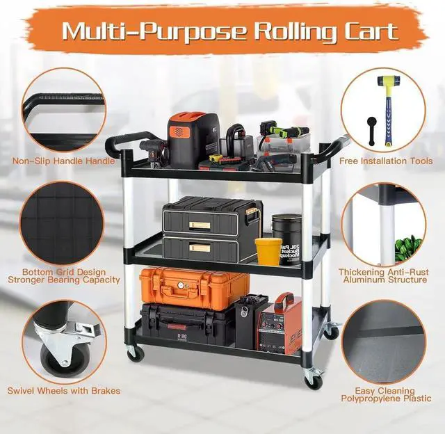 Rolling Cart with WheelsOur rolling cart with 4 360° quiet wheels (2 lockable), so you can move the rolling cart anywhere without effort. Or securely hold the heavy-duty rolling cart in place for added stability.