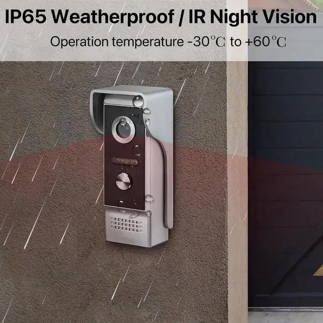 1080P Night Vision Wide Angle Doorbell Camera Full alloy 2MP doorbell camera with rain cover, built-in speaker and microphone, motion detection, 120º wide angle, night vision, rainproof, dustproof, vandal proof, support connects to all electronic locks. Motion detection, push notifications to your phone and indoor monitor. have a real-time video talk each other on the monitor or your cell phone. Indoor monitor powered, no batteries required.