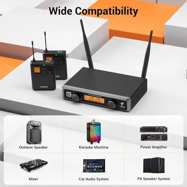 Enhanced Signal Stability: With 15 adjustable frequencies per UHF mic and a long transmission range (200 ft. ) in open space, ensuring that up to 15 sets can be used simultaneously without worrying about interferences.