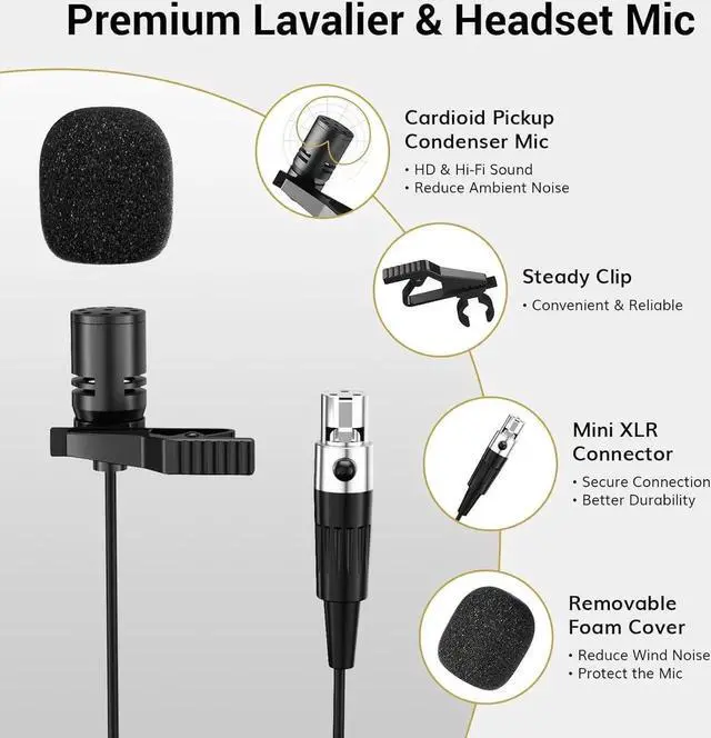 Applications: The two omnidirectional condenser headset microphones and lavalier microphone offer comfortable wear and can pick up your voice from any angle, delivering warm, clear, and loud high-fidelity sound. They are ideal for use in churches, training sessions, classrooms, interviews, and business presentations, among others. false-
