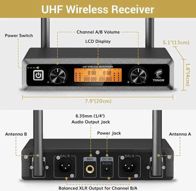 - Clear & Pristine Sound Quality: With a professional cardioid dynamic capsule, the system can reproduce more excellent, clear, pure, and full sound and eliminate background noise and howling. Ideal for Karaoke, Home KTV, Big party, DJ, Wedding, Class use.