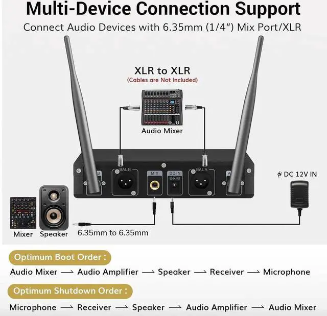 Clear & Pristine Sound Quality: With a professional cardioid dynamic capsule, the system can reproduce more excellent, clear, pure, and full sound and eliminate background noise and howling. Ideal for Karaoke, Home KTV, Big party, DJ, Wedding, Class use. falseWide