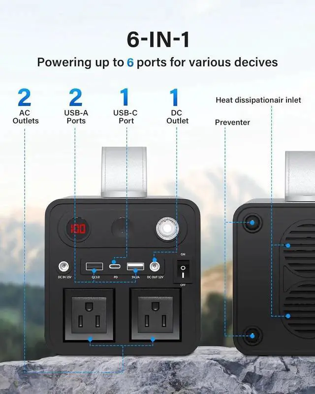[Emergency Support] - The power generator is an ideal helper for outdoor activities or home emergency. Comes with a 3 modes LED light on SOS and lighting. Also provides immediate backup power when blackout, protecting your computer, file services, etc.