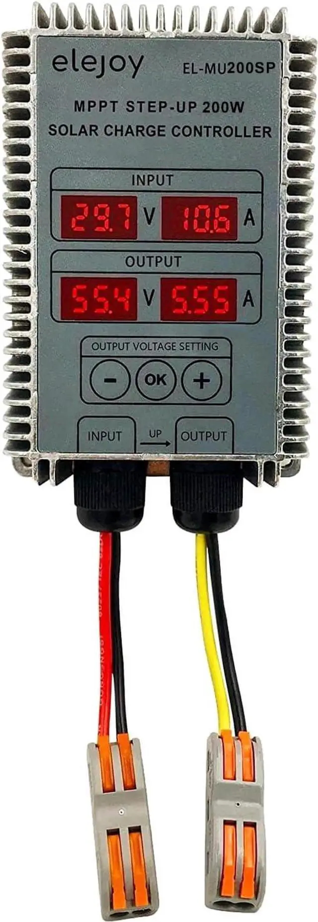 Versatile Battery SupportOur MPPT charger supports various batteries such as lead-acid and lithium-ion, providing versatility to your charging needs. falseFull System ProtectionThe device comes equipped with short circuit protection, over current protection, and over temperature protection, ensuring the safety and durability of the device. It is also weatherproof and dustproof, making it suitable for outdoor use. false- Integrated Step-Up ConverterELEJOY's MPPT Solar Controller features an integrated step-up converter that can deliver an adjustable output voltage of 24V - 85V DC with manual button settings. It supports common output at 24V/36V/48V/60V/72V to your battery.