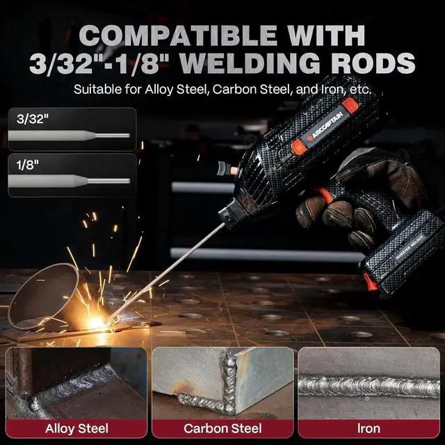 Upgraded Accessories for Efficient Welding: This welding gun is equipped with auto-darkening welding goggles to protect the welders eyes from fatigue. The upgraded ground cla not only provides more stae current but also has a more robust structure for greater durability. The 8ft tended power cord pands the working range. Additionally, this welder machine is coatie with welding rods ranging from 3/32 to 1/8. is committed to continuous upgrades to achieve efficient welding.