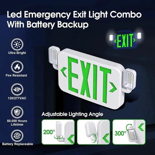 Reliable LightingSiTiSFi emergency exit signs made of Injection-molded thermoplastic housing, UL-94V-0 flame rating, the thickness has good fire resistance, corrosion resistance and durability, not easy to damage and suitable for 0-40(32°F-104°F)indoor damp locationDurable Backup&Wide VoltageThe Led emergency light combo with a built-in Nickel cadmium battery, for minimum 90 minutes emergency operation during power outages, battery is included in the box, maximum 24 hours for full recharge time.